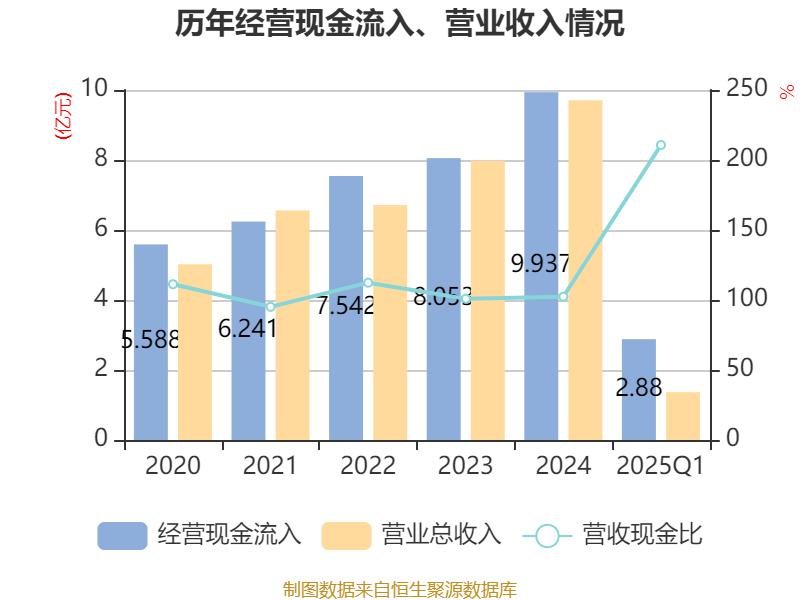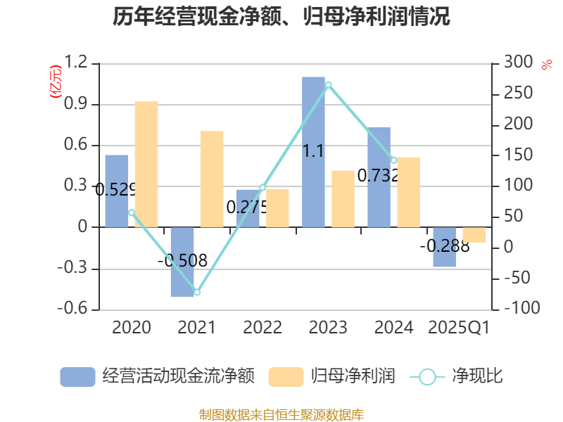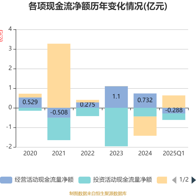 截至2025年一季度末大发配资,公司经营活动现金流净额为-2876.98万元,同比减少2098.92万元;筹资活动现金流净额6322万元,同比增加6341.17万元;投资活动现金流净额-3298.63万元,上年同期为-1.93亿元。
