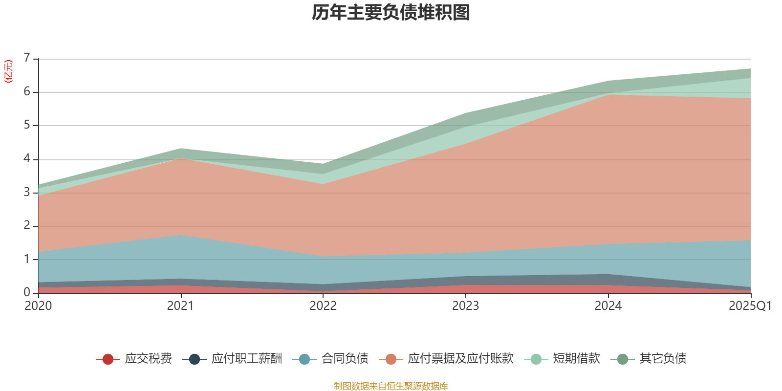 负债重大变化方面,截至2025年一季度末,公司短期借款较上年末增加1260.53%,占公司总资产比重上升3.58个百分点;合同负债较上年末增加55.58%,占公司总资产比重上升3.1个百分点;应付票据及应付账款较上年末减少4.79%,占公司总资产比重下降1.92个百分点;应付职工薪酬较上年末减少71.05%,占公司总资产比重下降1.56个百分点。