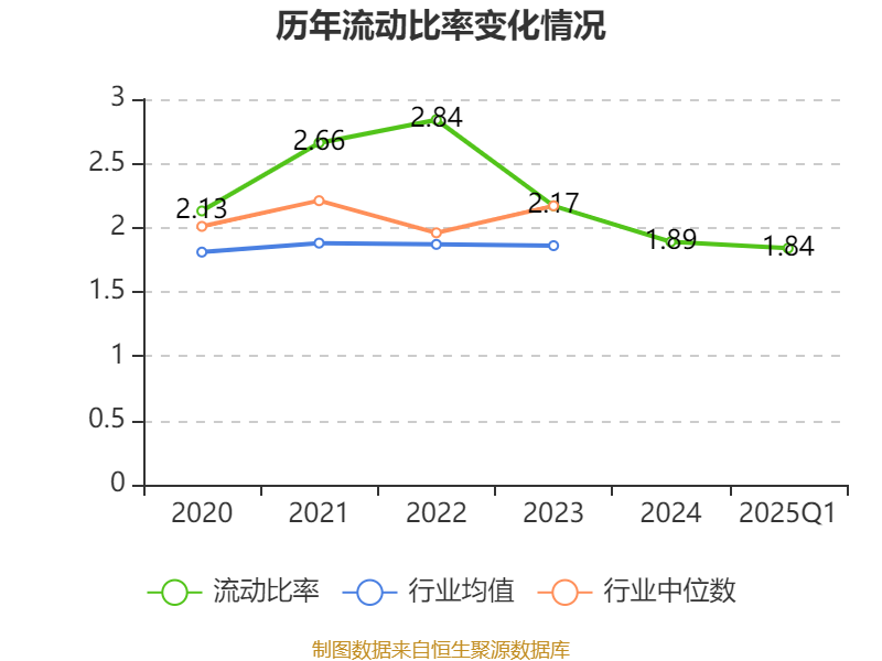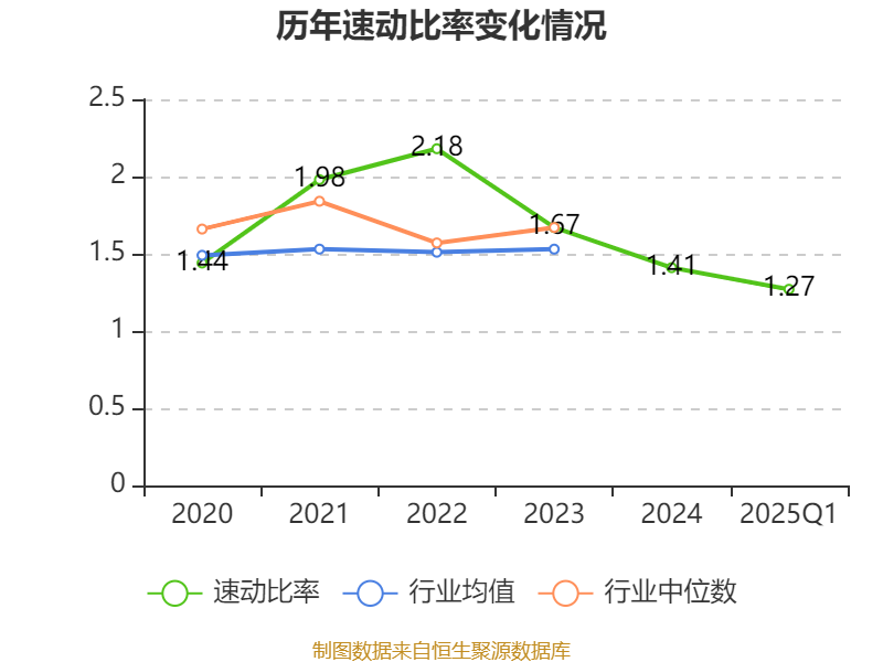 2025年第一季度,公司流动比率为1.84,速动比率为1.27。