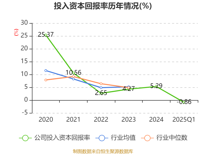 盈利能力方面, 2025年一季度公司加权平均净资产收益率为-1.26%,同比下降0.95个百分点。公司2025年第一季度投入资本回报率为-0.86%,较上年同期下降0.48个百分点。