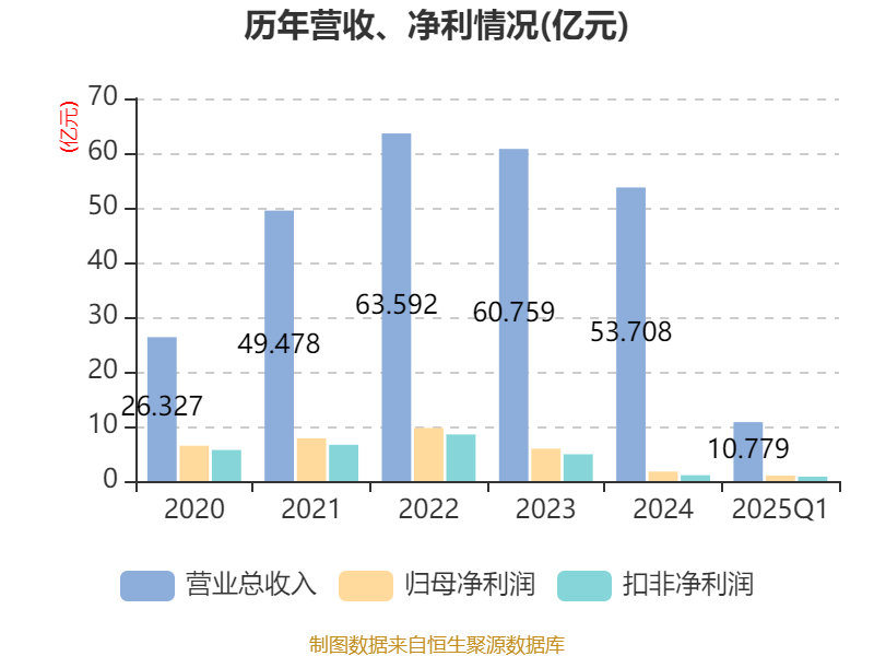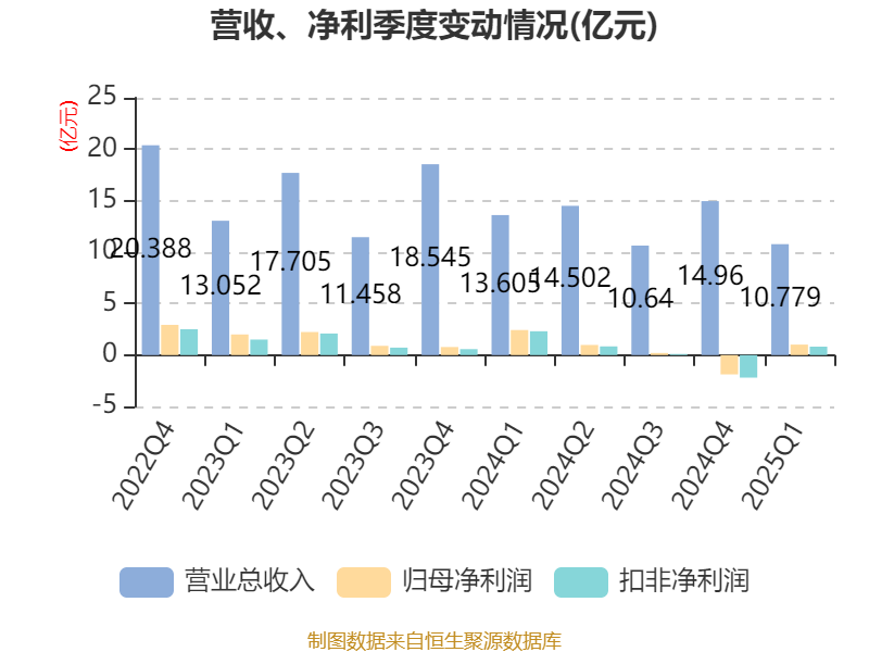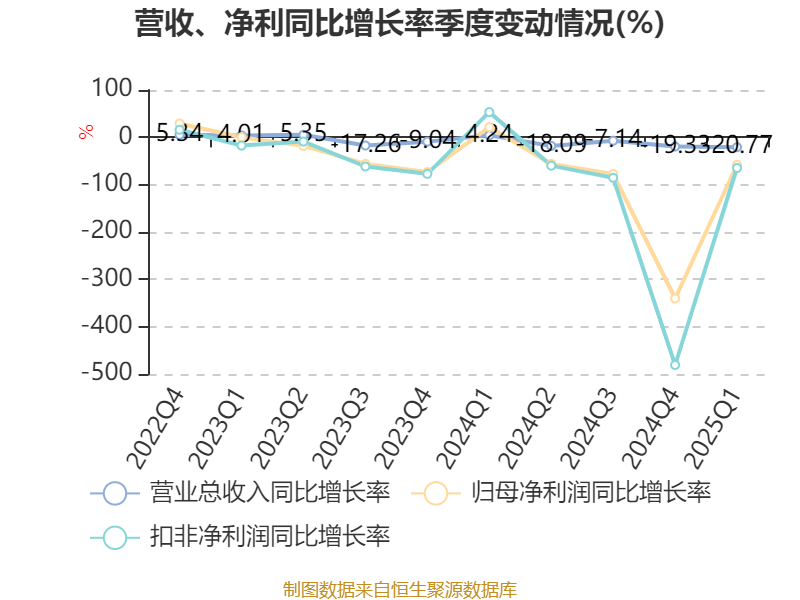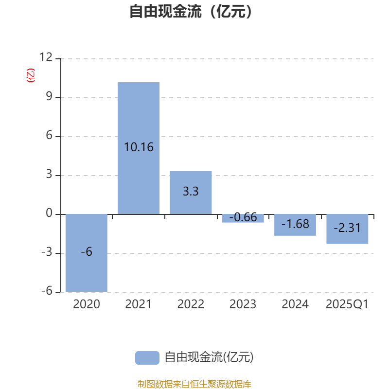 截至2025年一季度末,公司经营活动现金流净额为-2297.7万元,同比减少5782.83万元;筹资活动现金流净额4954.65万元,同比增加2.7亿元;投资活动现金流净额-7093.04万元,上年同期为-5494.49万元。