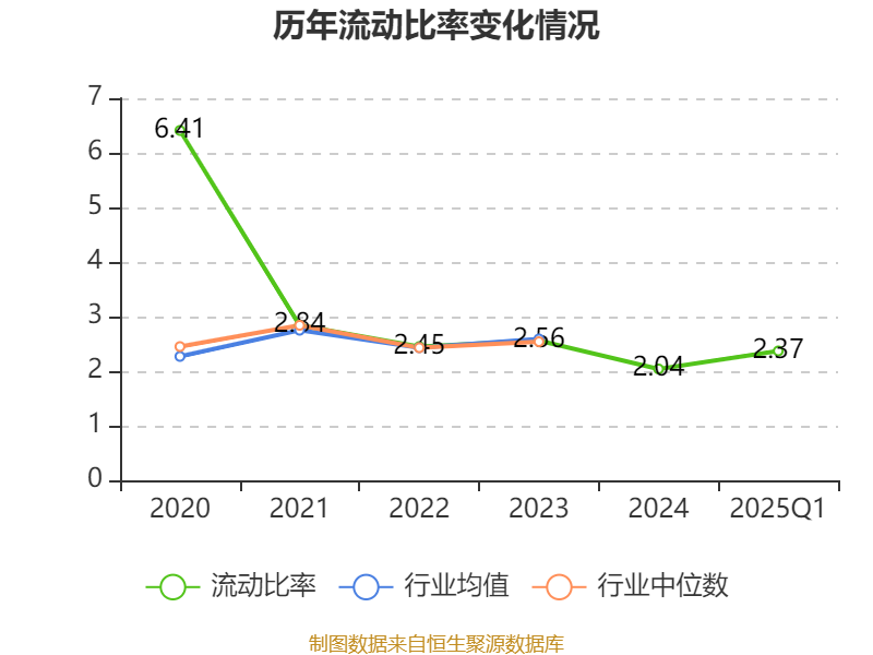 2025年第一季度,公司流动比率为2.37,速动比率为1.27。